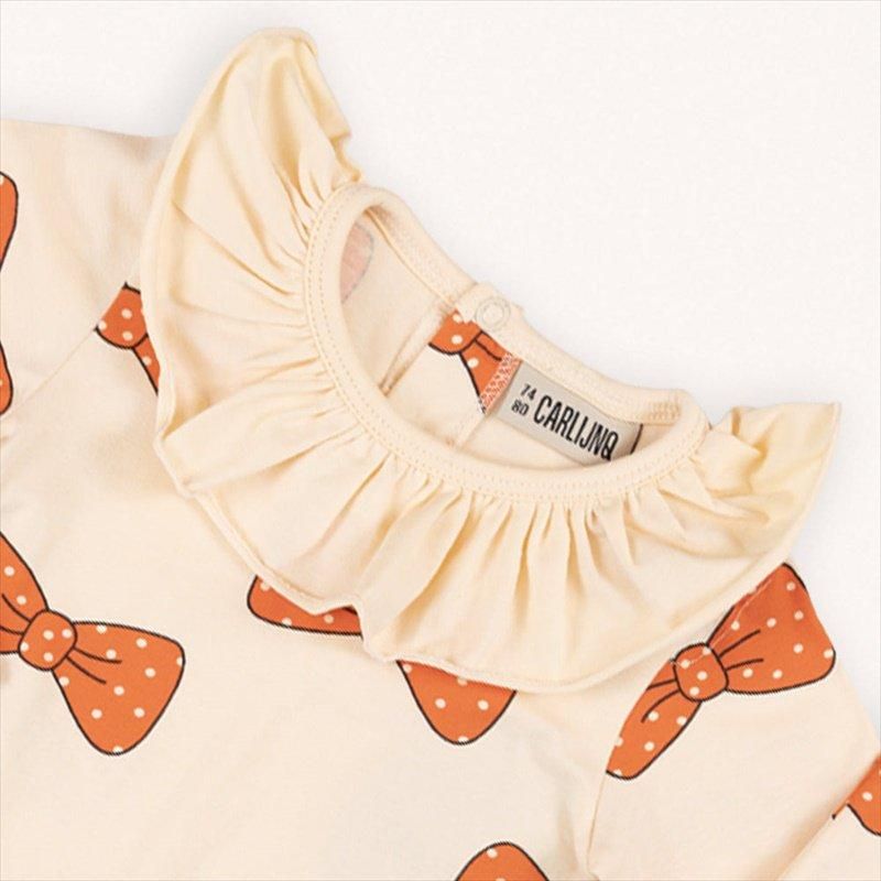 SOLD OUTFromオランダ 2024AWコレクション リボンイラストの総柄 襟付き長袖ボディスーツ