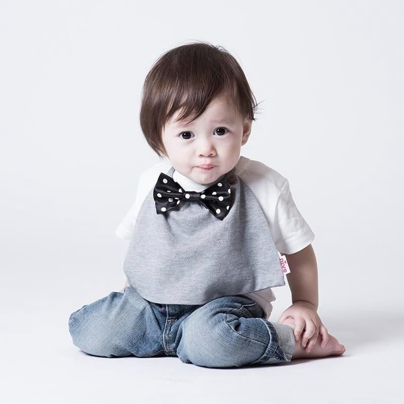 商品説明 ストライプの蝶ネクタイがおしゃれな男の子にぴったりなbib。