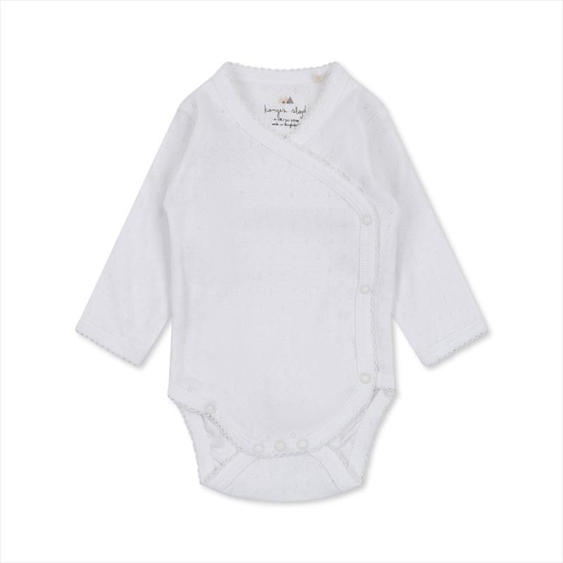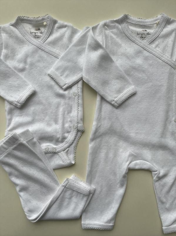 世界中のベビー&ママに愛されるデザインとオーガニックコットンにこだわったコンゲススロイド。 2023年秋冬コレクションからの一着。 真っ白の前開きベビーロンパース。 あると便利な真っ白のロンパースはセレモニーの時や、いつも使いの肌着として活躍します。 前開きなので首がすわっていない赤ちゃんでもお着替えしやすい◎ |
