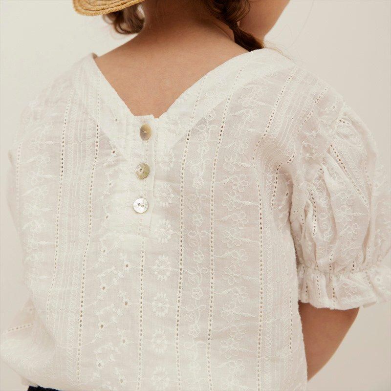 繊細な刺繍生地を使用した清潔感あるブラウス。