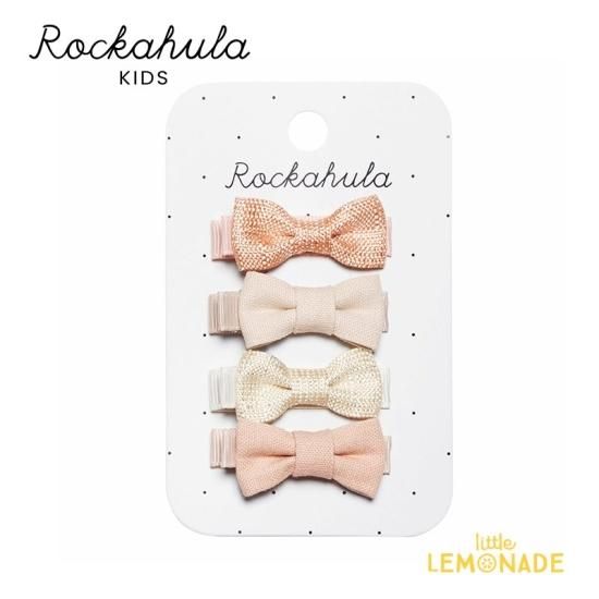 【Rockahula Kids】 Flora Linen Mini Bow Clips-PINK ヘアクリップ 4個セット ロッカフラキッズ H2154P