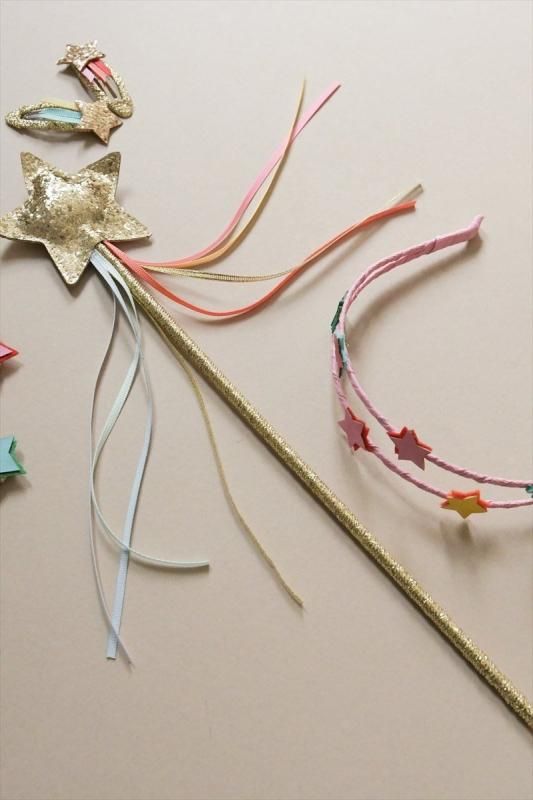 イギリスのキッズアクセサリーブランドRockahula Kidsから届いた ゴールドスターモチーフのステッキワンド。 キラキラのグリッター生地のゴールドスターがポイントのステッキワンド。 レインボーカラーのグログランリボンがあしらわれています。 この魔法の星の杖を振ると、どこにでも虹の輝きが広がります! 魔法の冒険や想像力豊かなごっこ遊びや、 ハロウィンパーティーやイベントにぴったりな、可愛いデコレーションアクセサリーです。 ※スティック部分は無理に力を加えると折れてしまいますので、お取り扱いにはご注意ください。 また、小さなお子様がお口にいれたり、ケガをしないよう、ご使用の際は大人の方の目の届く範囲でお願いいたします。 |