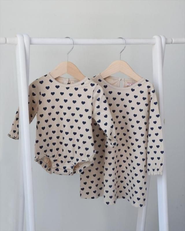 ハートプリントが可愛い長袖ワンピース