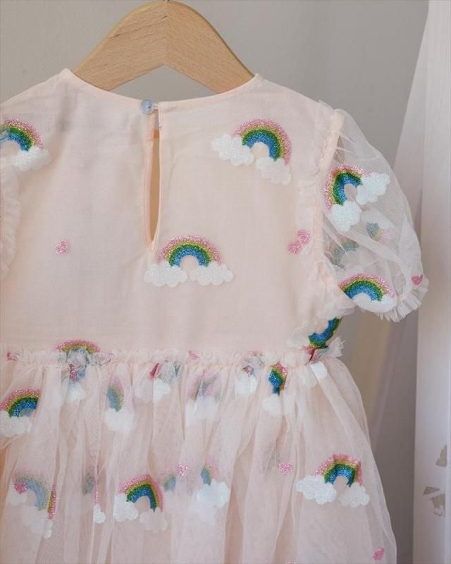 ふんわりチュールにレインボー刺繍が散りばめられた、
