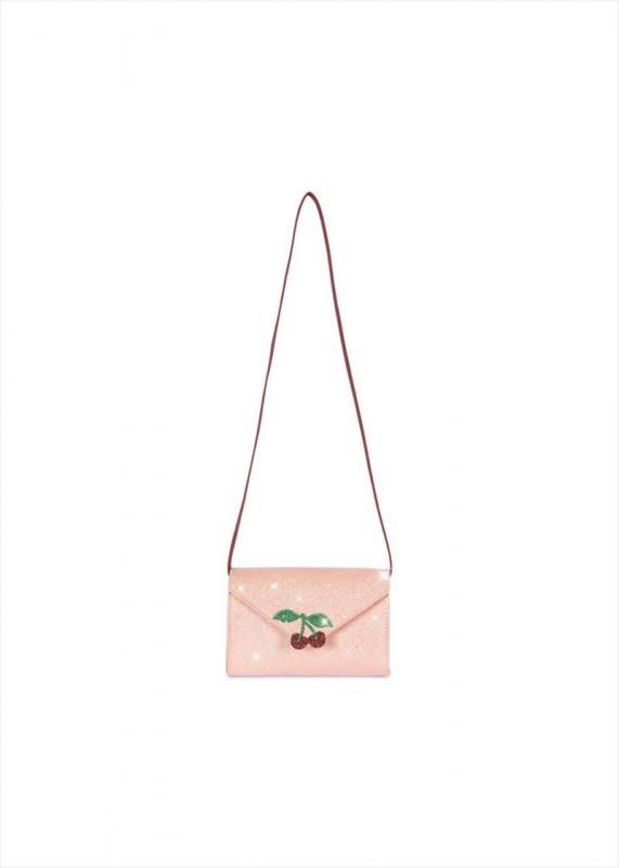 ピンクのラメ素材にチェリーのワンポイントをあしらった