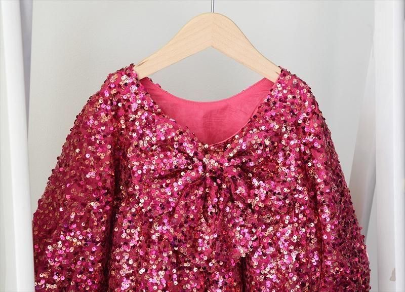 LILA SEQUINS BOW DRESS - SPARKLING SANGRIA ピンクのスパンコールドレス |