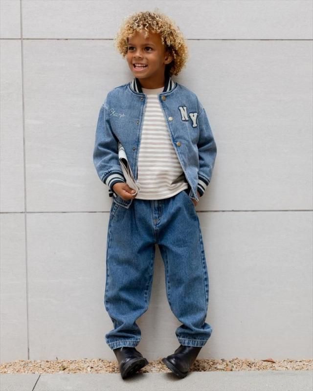 ヴィンテージ感のあるデニム素材に、 スポーティーなリブラインを組み合わせたスタジャン。 胸元のワッペンがアクセントになり、 カジュアルな中にも遊び心をプラスします。 ヴィンテージプレッピーの雰囲気を 余すところなく表現しています。 定番アイテムとして大活躍間違いなし。 羽織るだけでスタイルが決まる万能アウター。 ユニセックスで着られるので、 兄妹やお友達とのおそろいコーデにもおすすめです。 |