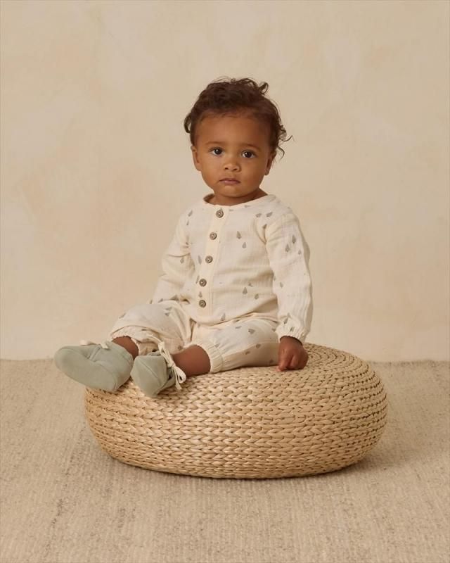 アメリカの人気ベビーアパレル Quincy Mae から 2025年秋冬コレクションで届いた一枚。 ベビーの肌に優しい、柔らかい素材と、 着まわしやすいデザインが人気のブランドです。 柔らかなオーガニックコットンガーゼを 使用した長袖ジャンプスーツ。 胸元にはココナッツボタン、 股下には着替えやすい隠しスナップボタン、 袖口と脚口には伸縮性のある素材を使用し、 完璧なフィット感を実現しました。 |