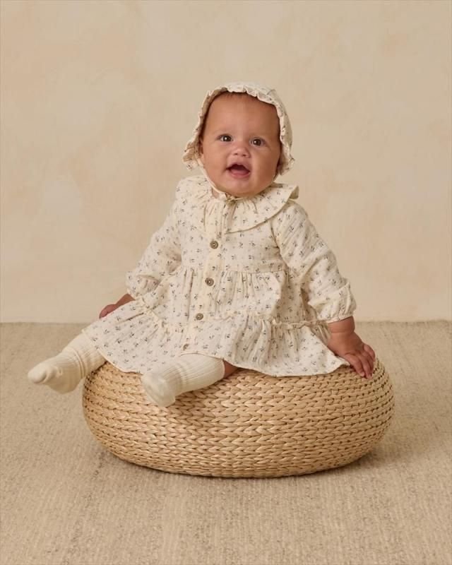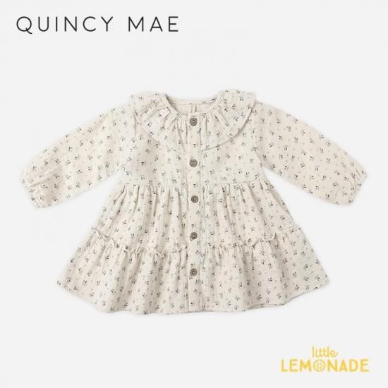 【Quincy Mae】 RUFFLE COLLAR BUTTON DRESS (6-12か月/12-18か月/18-24か月/2-3歳/4-5歳) AW25 QM463UEBL KTZ