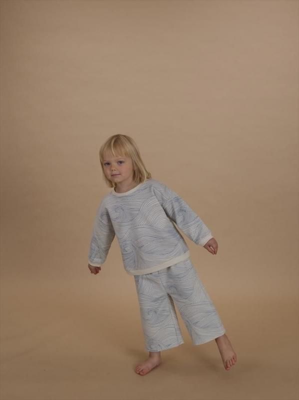 ブルーの波模様が全面に描かれた爽やかなスウェット。