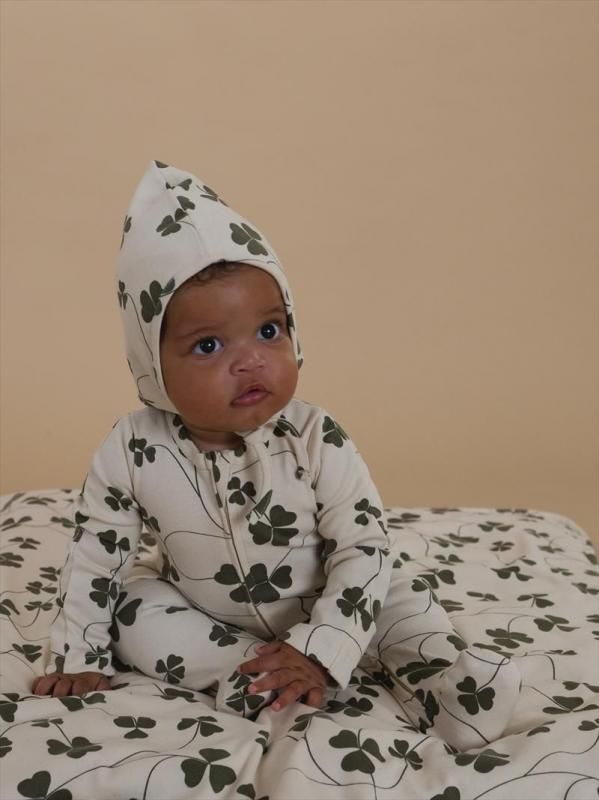 幸運を呼ぶクローバーがベビーにぴったりの一着。