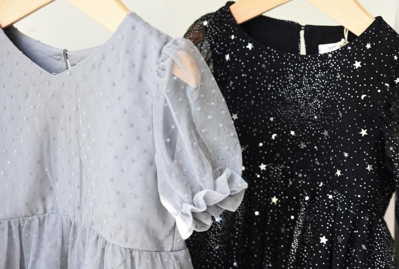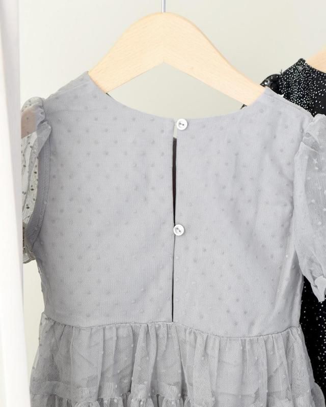 結婚式やパーティーのフォーマルシーンに。ブルードットのチュールドレス