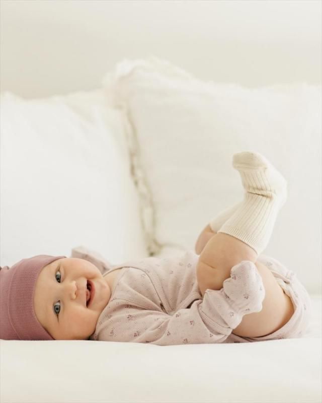 アメリカの人気ベビーアパレル Quincy Mae から 2025年秋冬コレクションで届いた一枚。 ベビーの肌に優しい、柔らかい素材と、 着まわしやすいデザインが人気のブランドです。 キュートなポインテールニットで仕立てた、 サイドスナップボタン付きのボディスーツ。 赤ちゃんを優しく包み込みます。 前開きスタイルで簡単に着せ替えできるのも◎ 折り返し式のミトンで小さな手を暖かく保ち、 裾のスナップで簡単におむつ替えができるなど、 細部まで配慮されています。 出産祝いなどのベビーギフトにも喜ばれる一枚です。 |