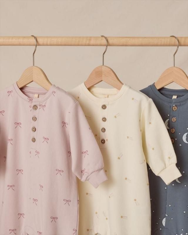 アメリカの人気ベビーアパレル Quincy Mae から 2025年秋冬コレクションで届いた一枚。 ベビーの肌に優しい、柔らかい素材と、 着まわしやすいデザインが人気のブランドです。 ココナッツボタンとリブ編みが特徴の、 着心地の良いリラックスフリースジャンプスーツは、 お子様の秋冬ワードローブにぴったりです。 股下には隠しスナップが付いているので、 着替えも簡単です。 出産祝いのにもおすすめのアイテムです。 |