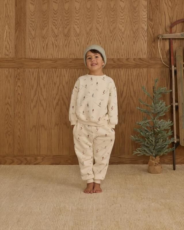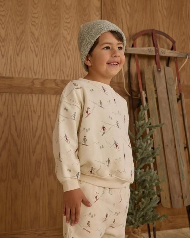 フレンチテリーを使用した リラックスフィットのスウェットシャツ。 くすみカラーとやさしいタッチのイラストが可愛い、 Rylee + Cru(ライリーアンドクルー)のホリデーコレクション。 冬らしい「スキーヤー」柄が描かれた、 柔らかなスウェットプルオーバー。 ナチュラルなカラーに さりげないプリントが映えるデザインで、 シーズンムードを高めてくれます。 裏起毛のない軽やかなスウェット素材で、 秋冬から春先まで長く活躍。 男の子にも女の子にも似合うユニセックスな1枚です。 |