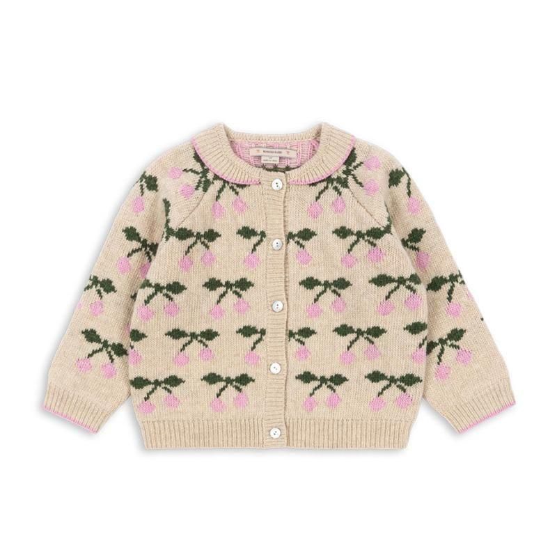 ベビー・キッズ用コンゲススロイド さくらんぼ柄のウール混カーディガン