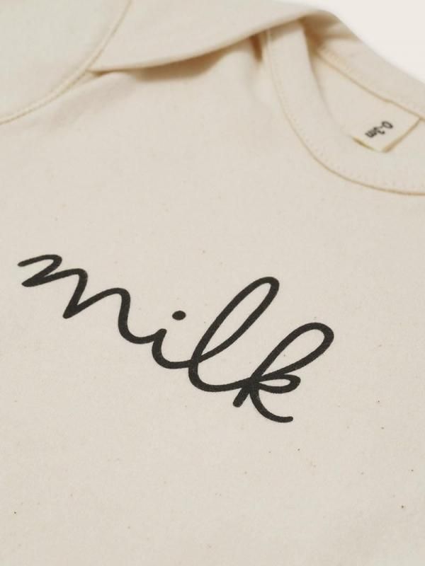 Organic Zooから届いた秋冬 Undyed Milk Playsuit ロゴ 長袖 カバーオール